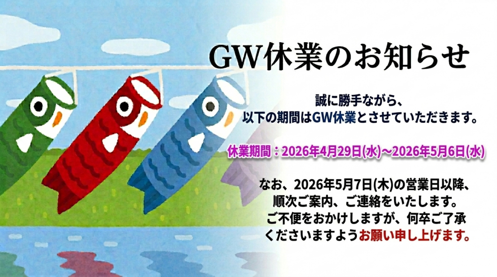 2026年GW(ゴールデンウイーク) 期間中の休業についてお知らせいたします